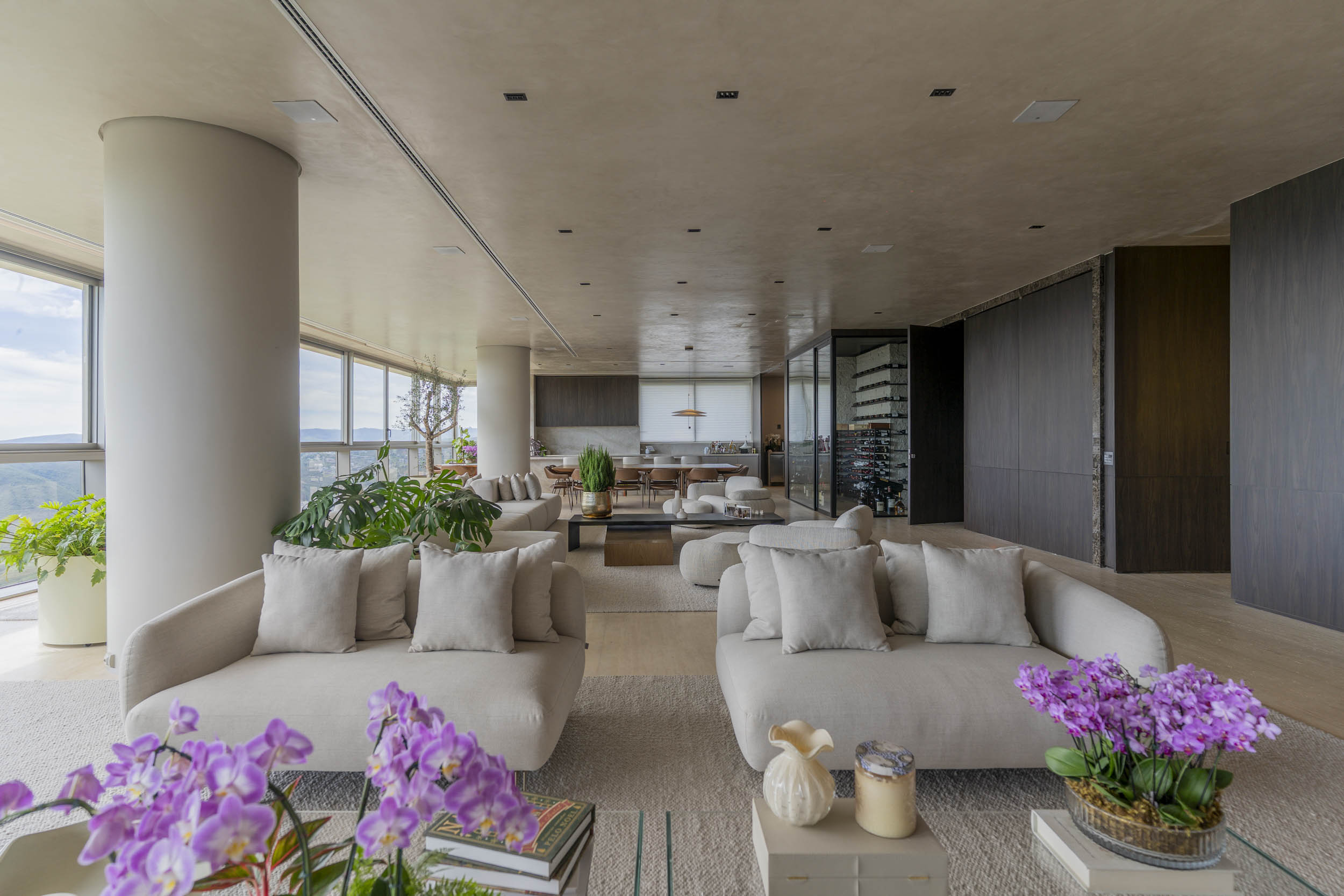 Este imóvel localizado no Vila da Serra traduz com precisão o que Nova Lima oferece de mais exclusivo hoje. Com 671 m², sala ampla e planta bem resolvida com o espaço gourmet integrado a cozinha. O apartamento se destaca pela vista panorâmica definitiva e pela presença de uma adega para 1.200 rótulos pensada para quem valoriza experiências.